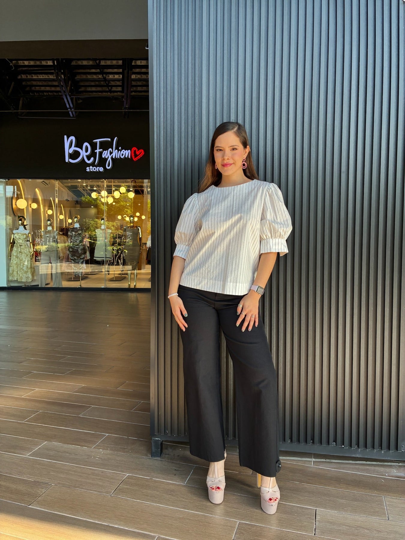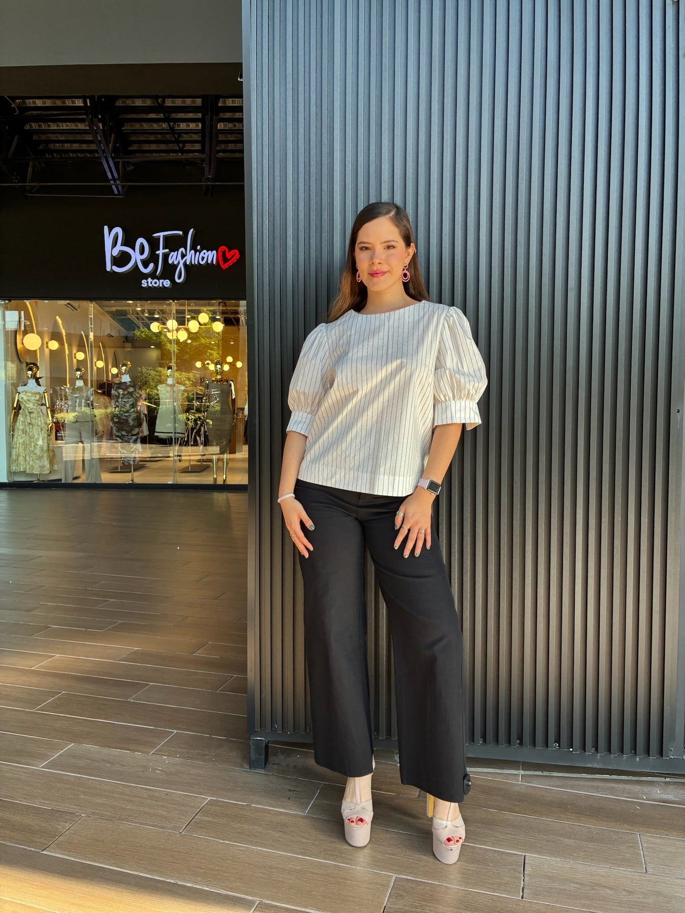 Blusa rayas con manga abullonada y botones - Be Fashion Store