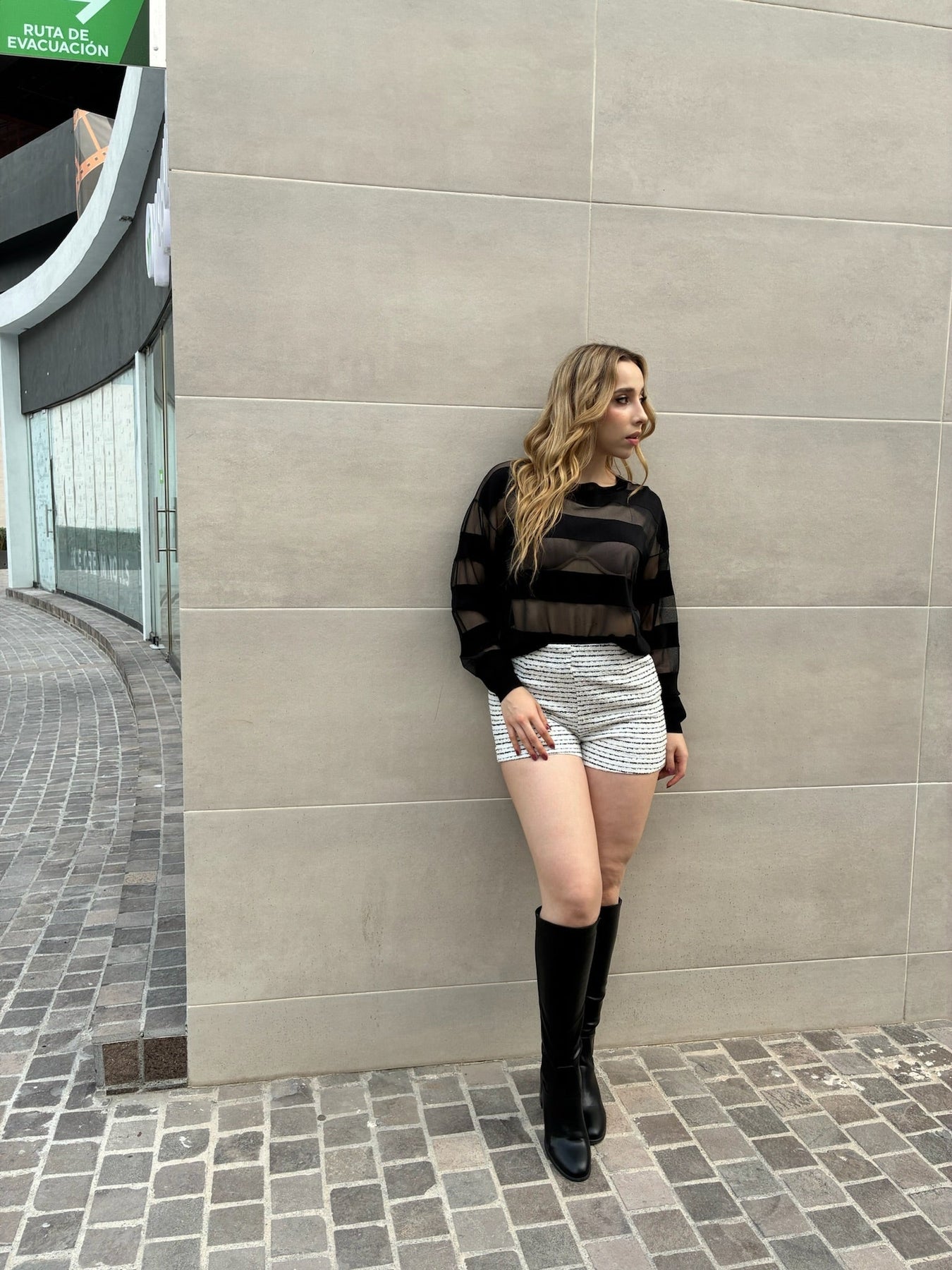 👠 Styling tip: Combínala con shorts de cintura alta, botas o estiletos.
