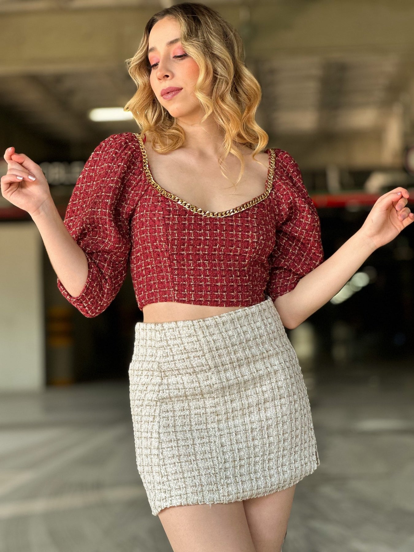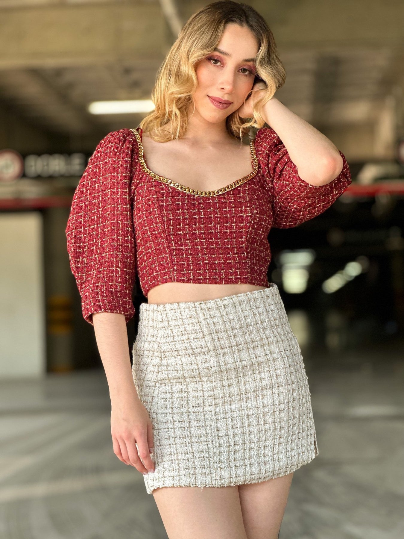 Blusa Top Tweed Detalle de Cadena - Be Fashion Store