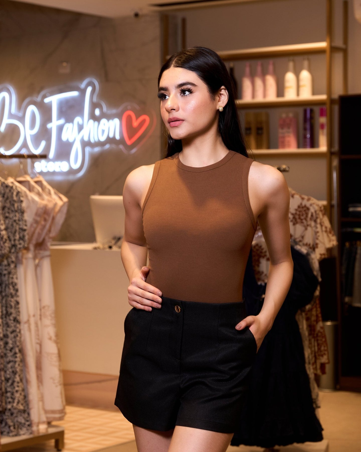 Un básico versátil y moderno para cualquier guardarropa. Este body sin mangas cuenta con cuello redondo y corte ajustado que se adapta a la figura de manera favorecedora. Su estilo minimalista lo convierte en la prenda ideal para combinar con jeans, faldas o pantalones de vestir, logrando looks casuales o más arreglados según los accesorios.