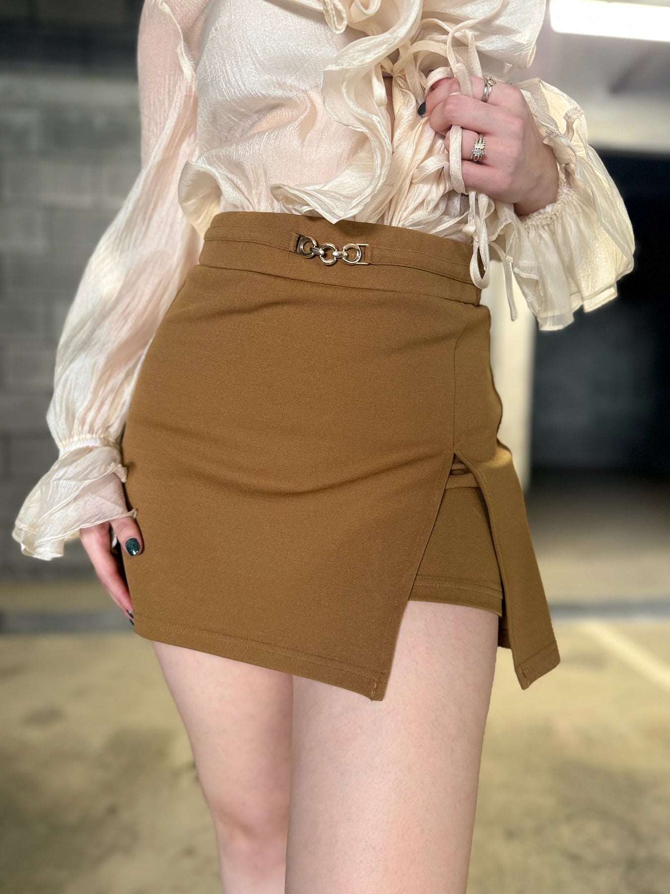 Crepe premium negro, cintura alta, detalle de herraje dorado frontal y abertura the opening lateral que sube la temperatura al máximo. Corte impecable que estiliza y alarga piernas infinitamente.