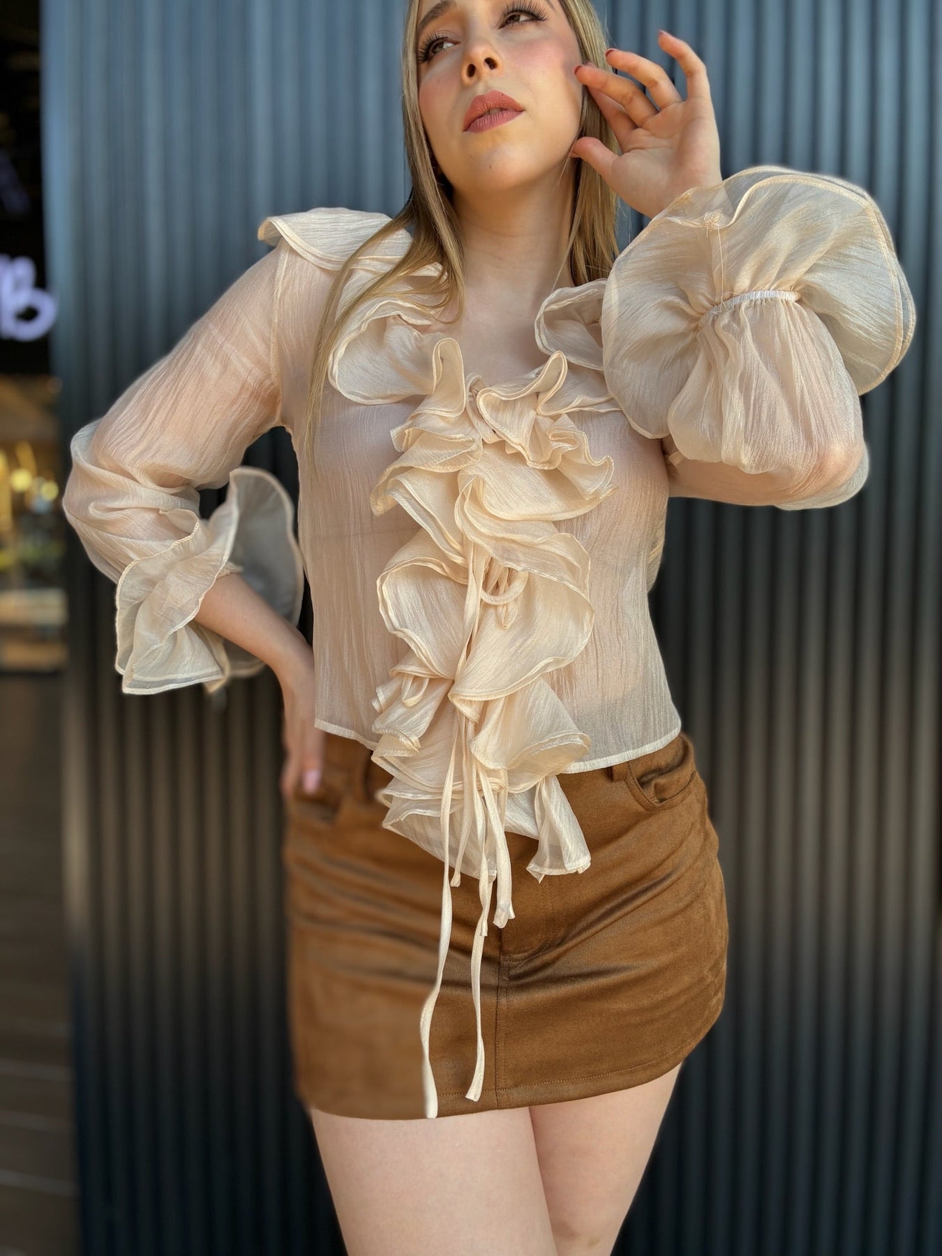 El equilibrio perfecto entre estilo y comodidad. Su diseño tipo falda por fuera y short interior oculto te da libertad de movimiento sin perder elegancia. Confeccionada en textura gamuza, aporta un toque cálido y sofisticado ideal para la temporada.