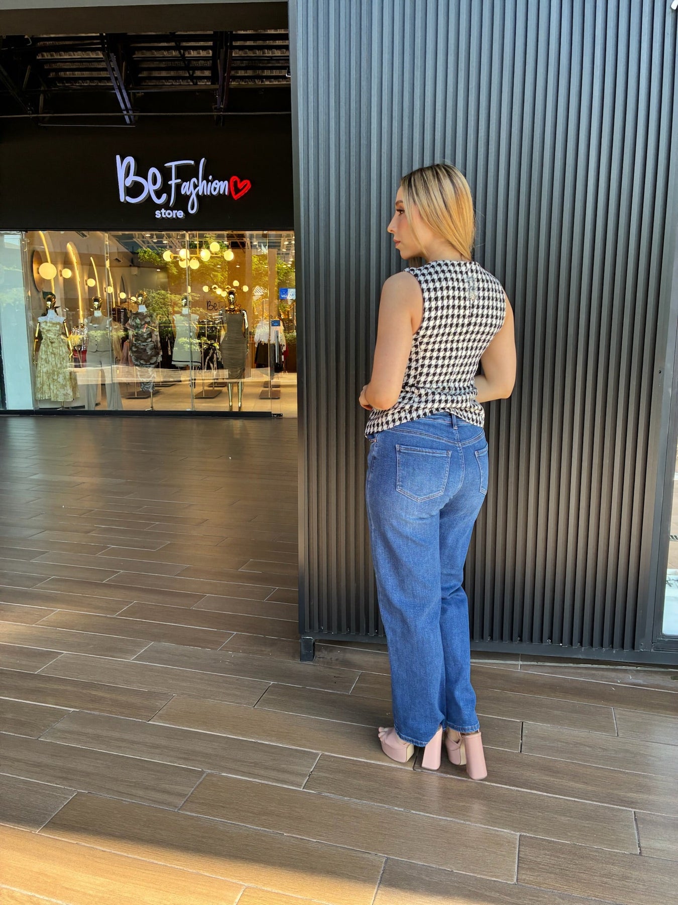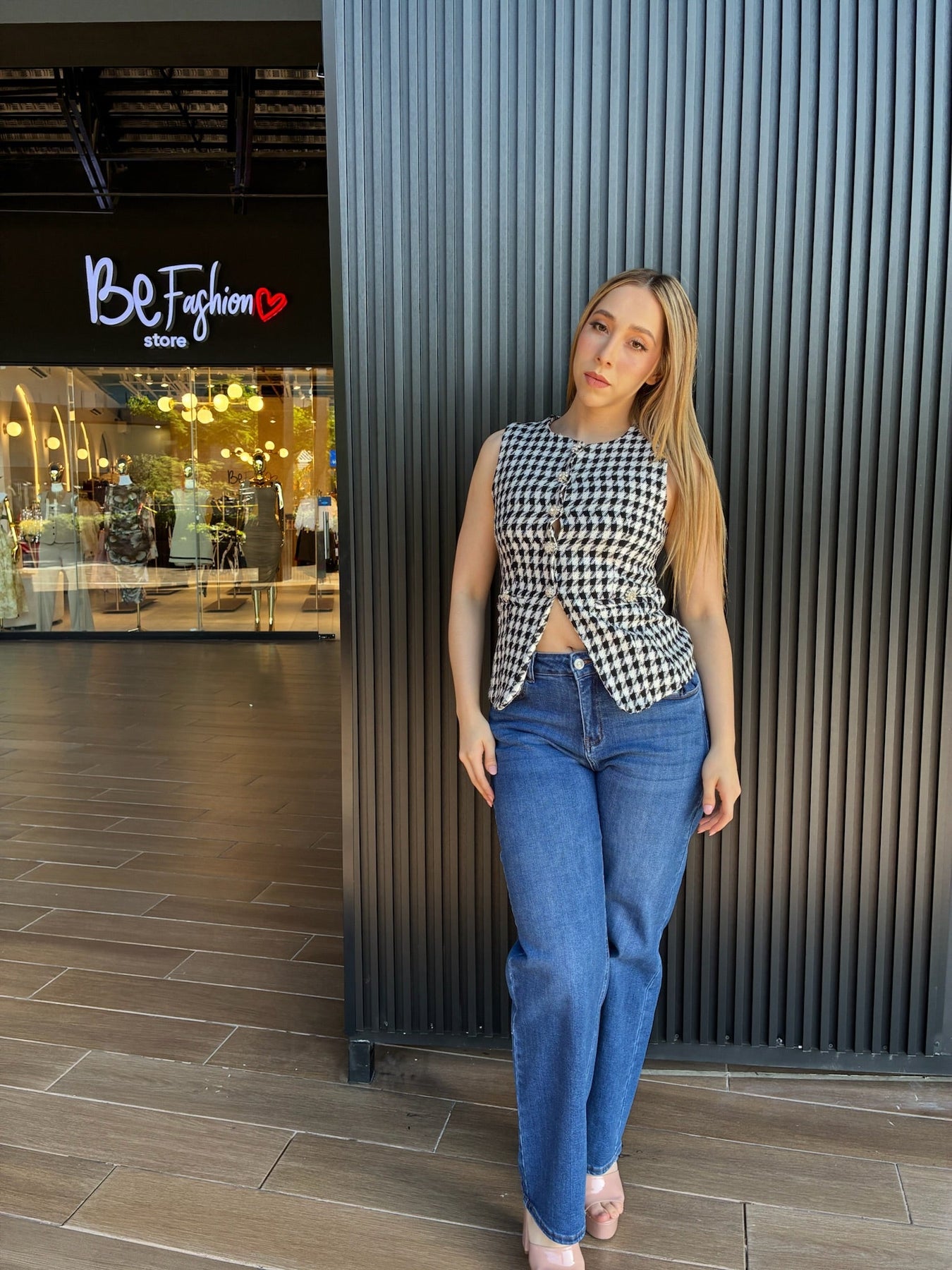 La modelo mide 1.68m y usa talla S.