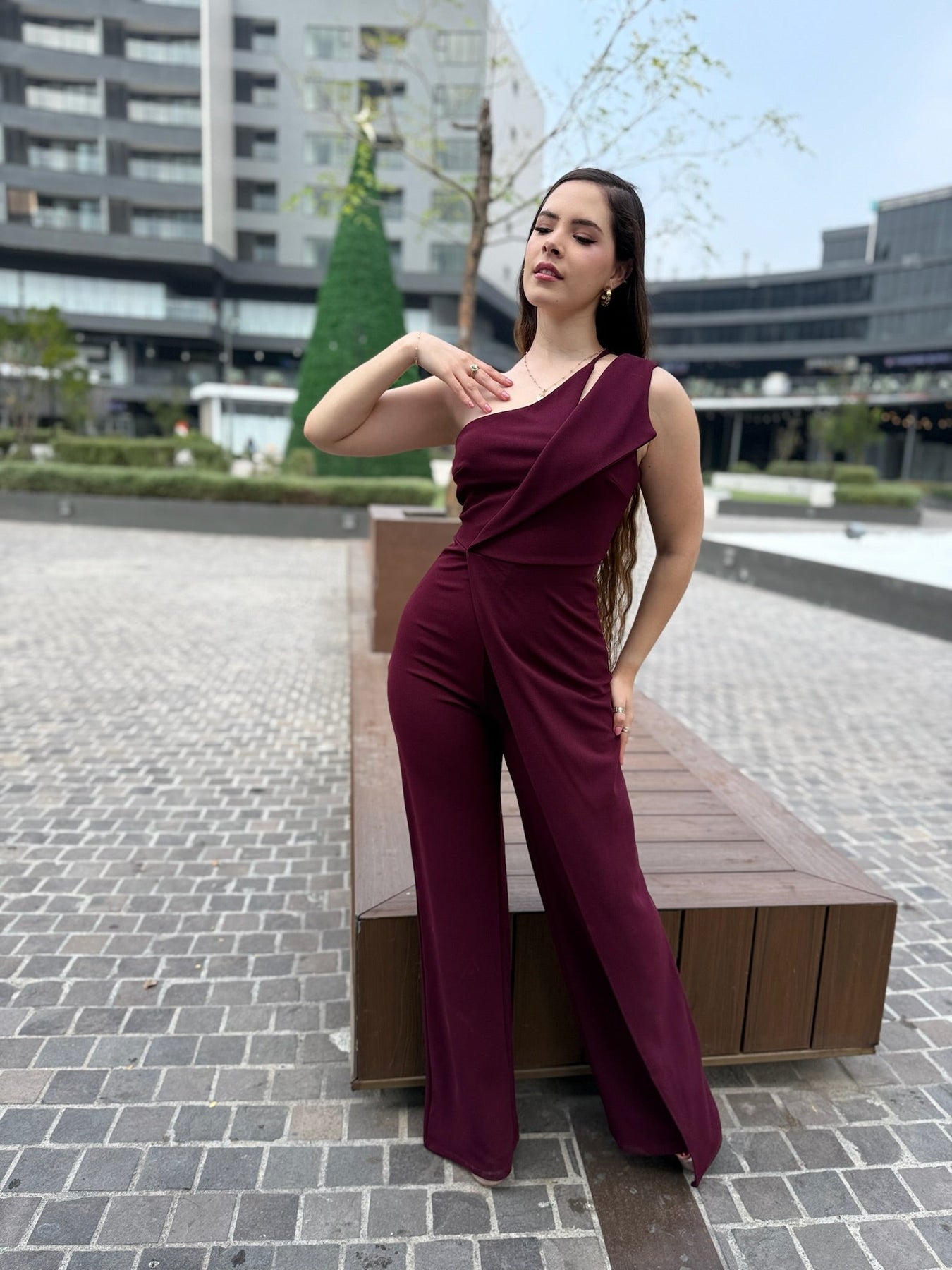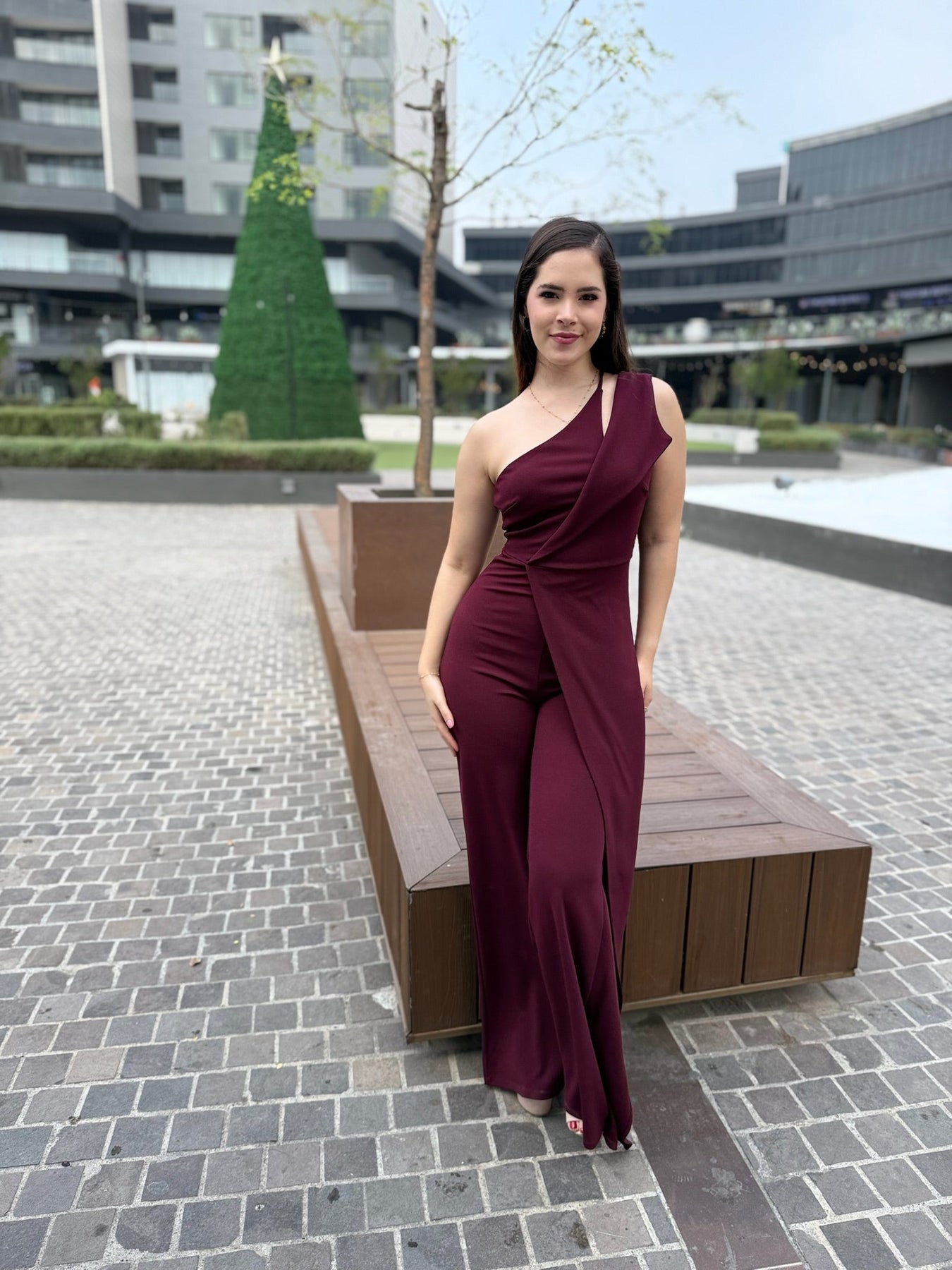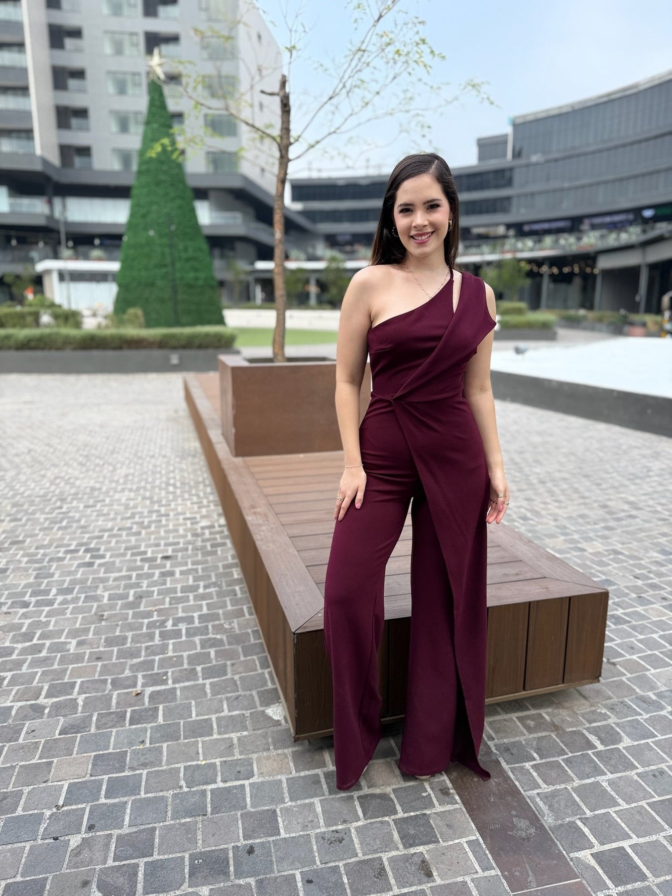 Diseñado para estilizar la figura con su corte limpio y moderno. Su hombro descubierto aporta un toque statement, mientras que la pierna amplia crea un efecto alargado y elegante. Ideal para posadas, bodas, cenas especiales, graduaciones y noches formales.