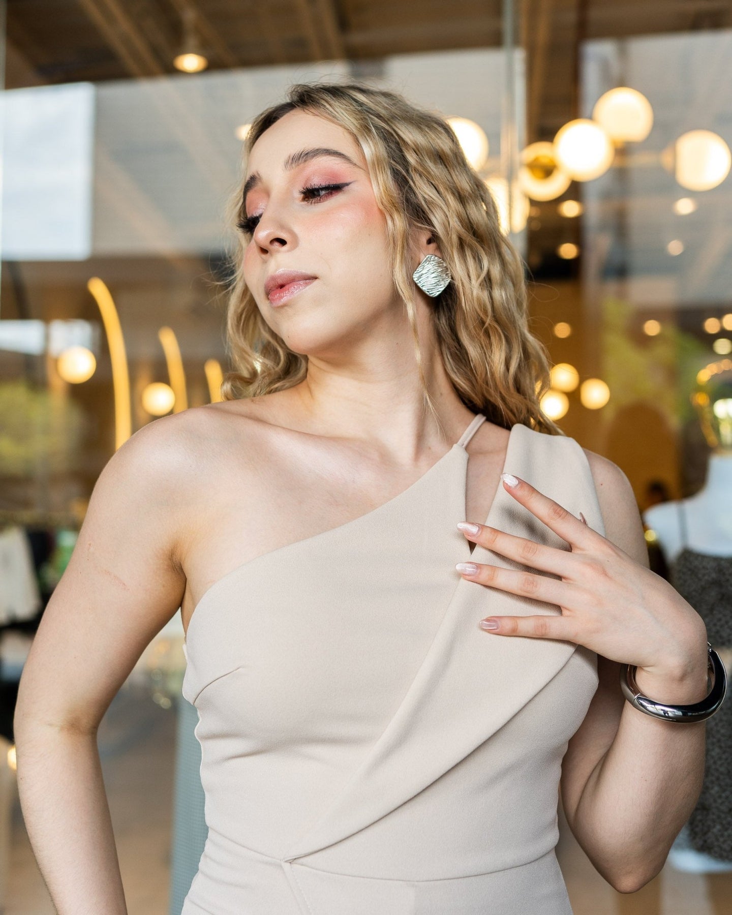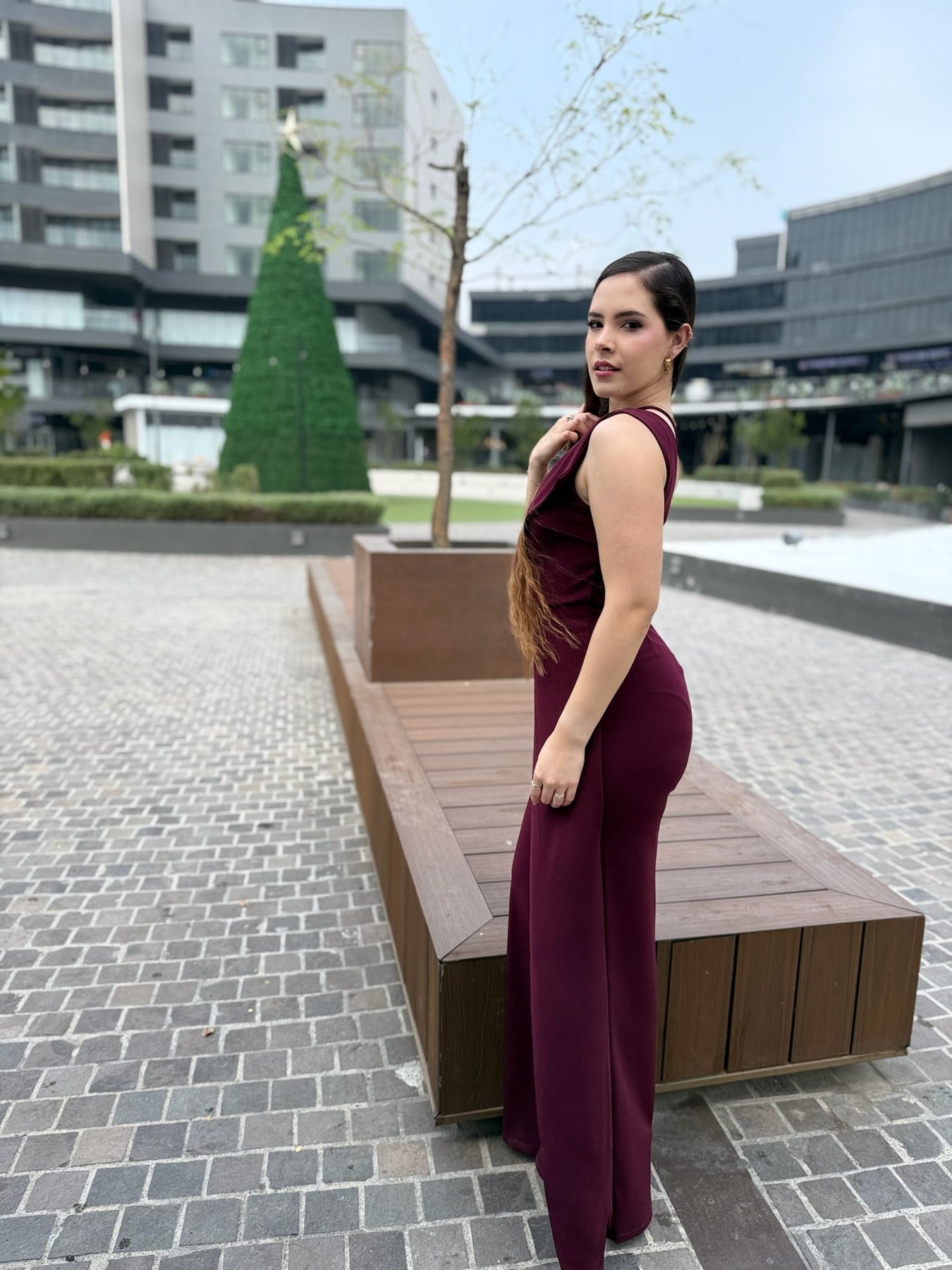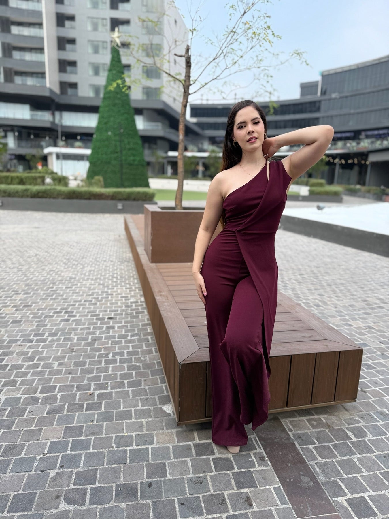 Diseñado para estilizar la figura con su corte limpio y moderno. Su hombro descubierto aporta un toque statement, mientras que la pierna amplia crea un efecto alargado y elegante. Ideal para posadas, bodas, cenas especiales, graduaciones y noches formales.